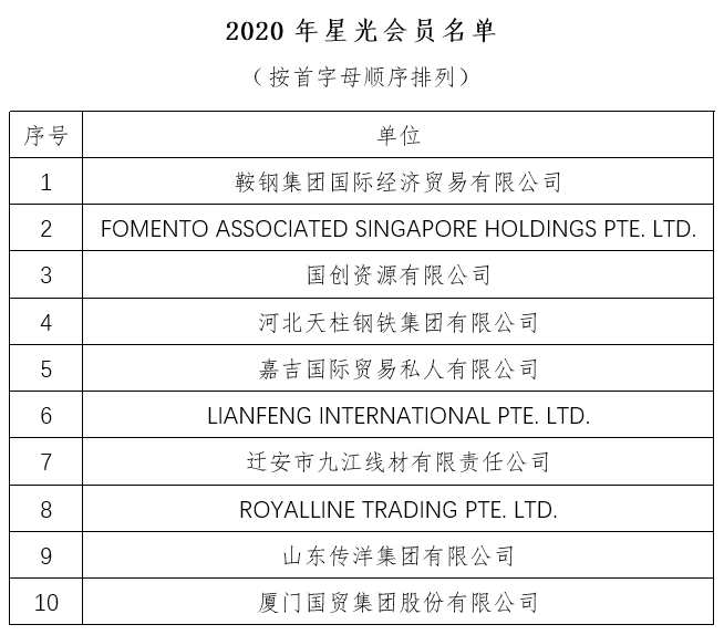 2020年,北鐵中心交易量突破6200萬(wàn)噸,在疫情中實(shí)現(xiàn)了逆勢(shì)跨越增長(zhǎng)。北鐵中心的成績(jī)離不開(kāi)廣大會(huì)員單位的鼎力支持和積極參與,根據(jù)會(huì)員交易情況和業(yè)務(wù)參與度,現(xiàn)決定授予10家會(huì)員單位“2020年卓越會(huì)員”榮譽(yù)稱(chēng)號(hào),10家會(huì)員單位“2020年星光會(huì)員”榮譽(yù)稱(chēng)號(hào)。