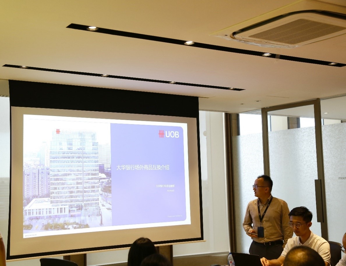 大華銀行環球金融部資金銷售鐘智高做題為《大華銀行商品套保介紹》的主題演講,詳細介紹了大華銀行場外商品互換套期保值工具,并通過實際案例講解了套期保值產品。