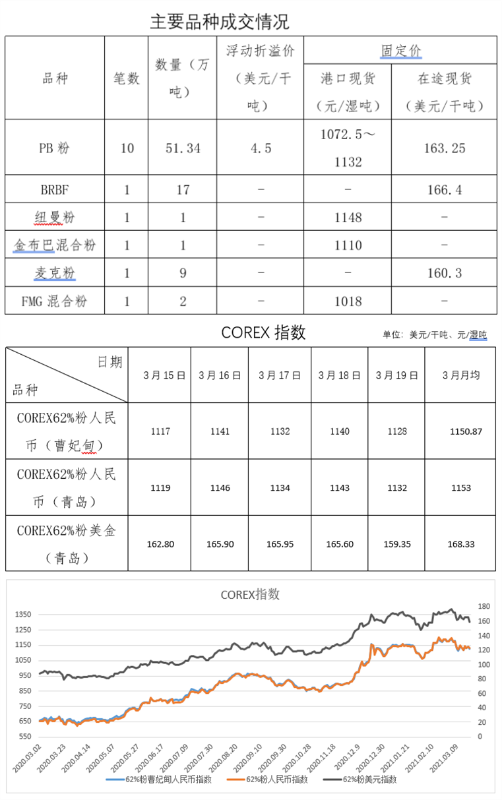 3月15日-3月19日成交22筆共92.09萬噸,其中在途4筆66.5萬噸,港口18筆25.59萬噸。
