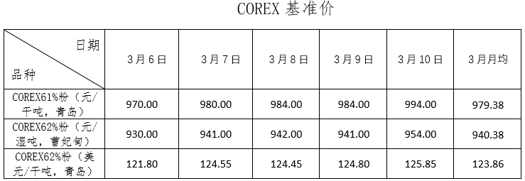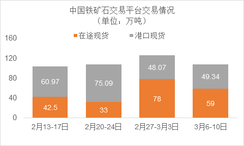 3月6日~3月10日成交50筆共108.34萬噸,其中在途4筆共59萬噸,港口46筆共49.34萬噸。主要成交品種包括:PB粉18筆共21.09萬噸,PB塊2筆共10萬噸,金布巴混合粉5筆共16.5萬噸,麥克粉4筆共21.8萬噸,BRBF 1筆共17萬噸,卡拉加斯粉2筆1.55萬噸,F(xiàn)MG混合粉4筆共4萬噸。